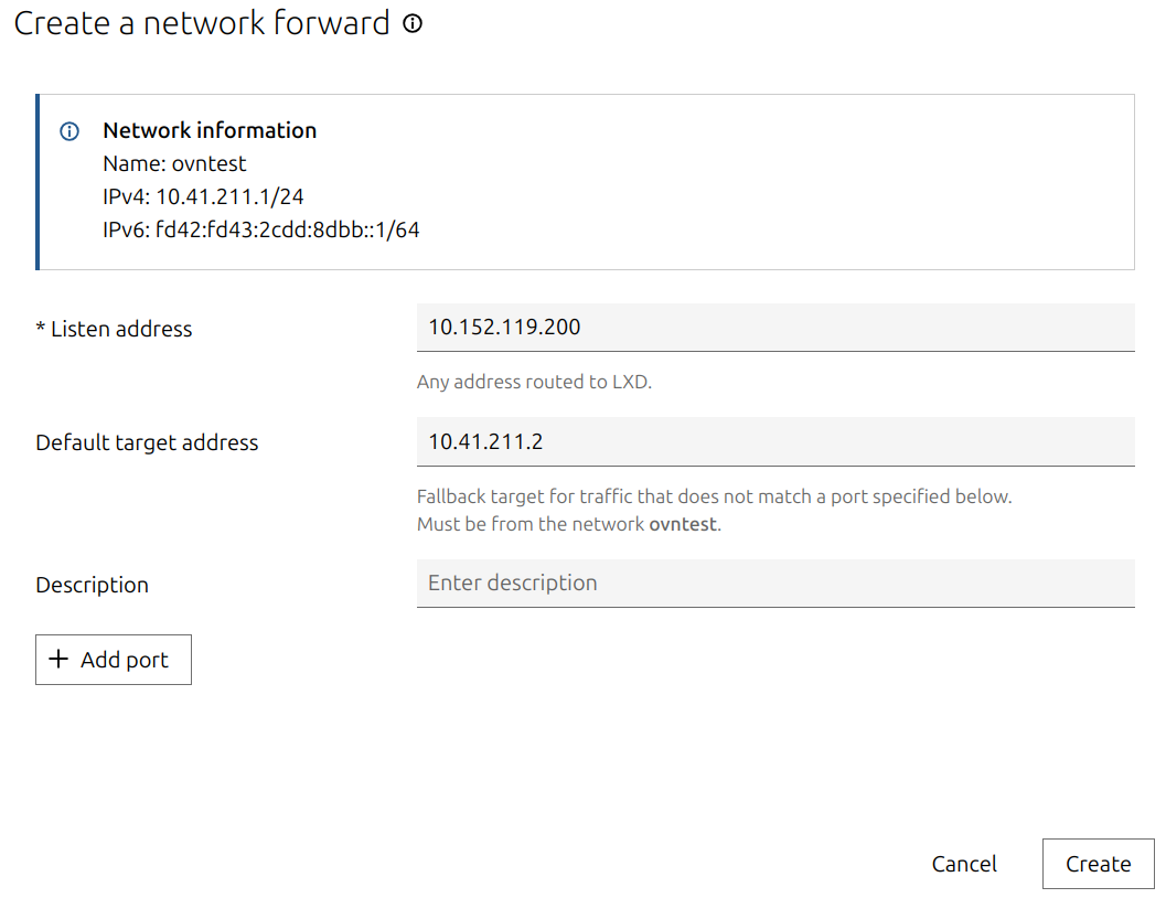 lxc network forward create ovn1 192.0.2.1 target_address=10.41.211.2