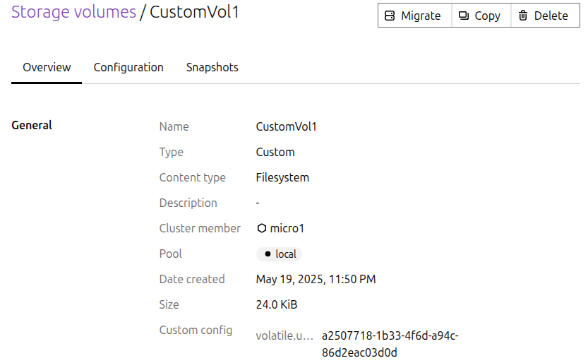 lxc storage volume copy <source_pool_name>/<source_volume_name> <target_pool_name>/<target_volume_name>